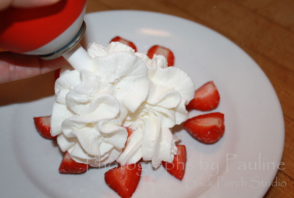 Now it is time for some garden fresh strawberries with whipped cream (from a can)!