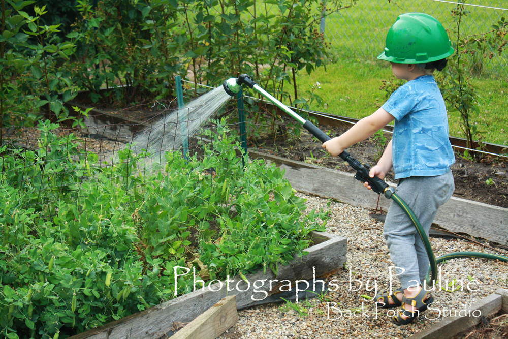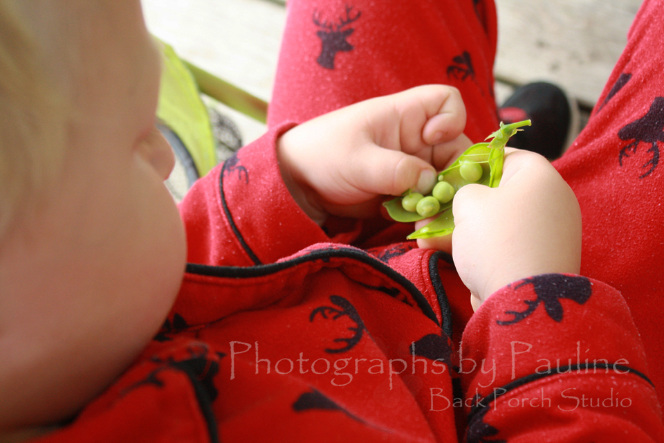“The peas are here! The peas are here!” our grandson exclaims.