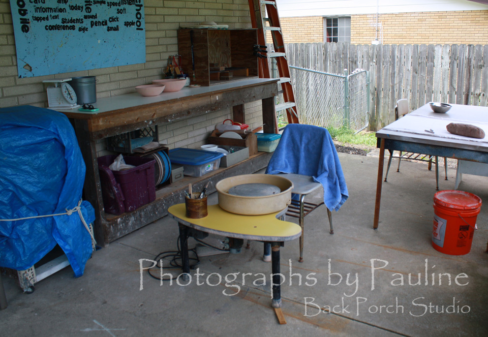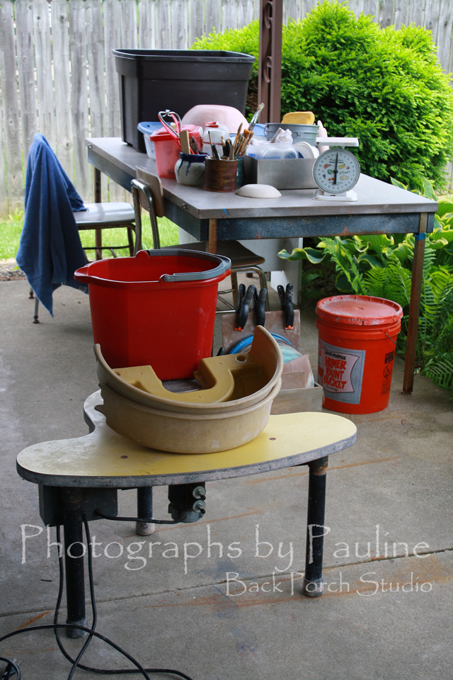 So happy warmer weather is here! Our garden is finally planted. Weeds are under control, somewhat. And my Back Porch Studio is set up and ready for playing in the mud!