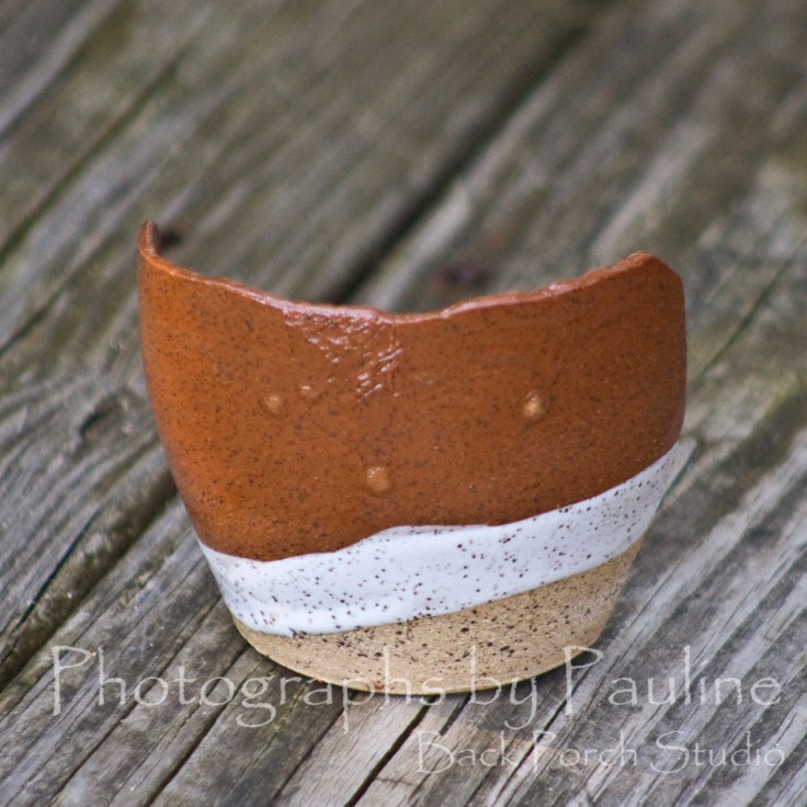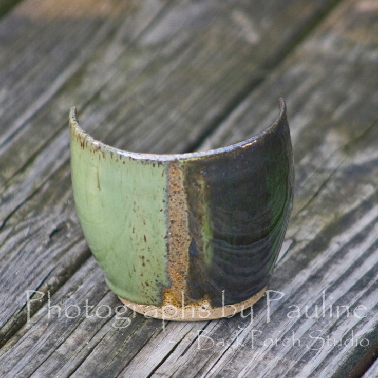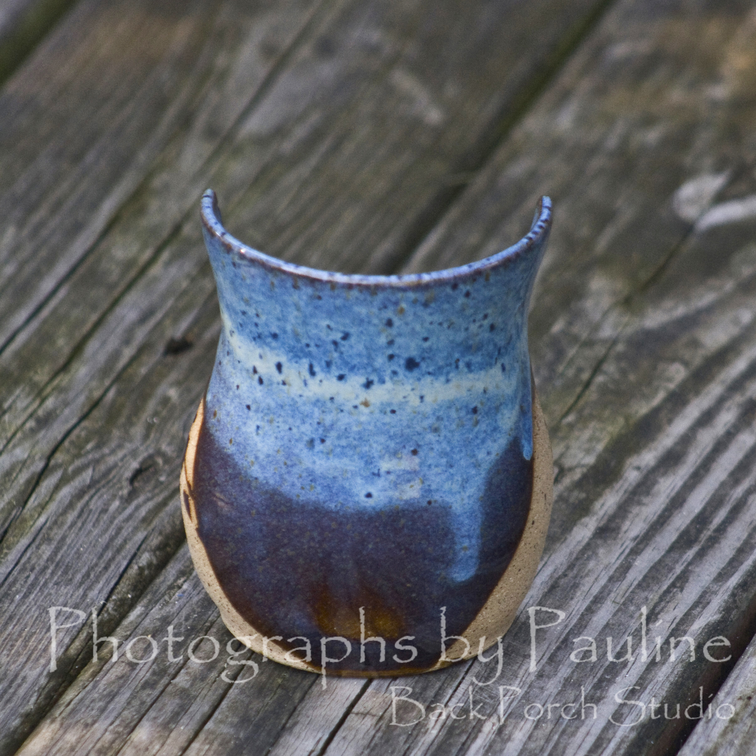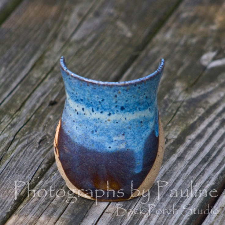 Believe it or not, this is just one glaze. It is Rutile Blue; my all time favorite until I started having trouble with pitting. It is a very thick glaze by nature. Instead of thinning with water, I added a gum solution for a more even application and less pitting. It is a fun glaze for layering. The dark purples are the result of one application. The more layering, the more brilliant blues appear.I revived the almost dried out Shino by adding a gum solution and water. Love the results with the white glaze.I unearthed these two glazes: Lustrous Jade (left) and Sea Weed (right). I think these two go well together!I made some pieces that I thought the Turquoise and Red Iron Oxide combination would look fabulous. I made a test tile to see whether or not I would like the results. I LOVE IT! This combination will be perfect for those pieces!
