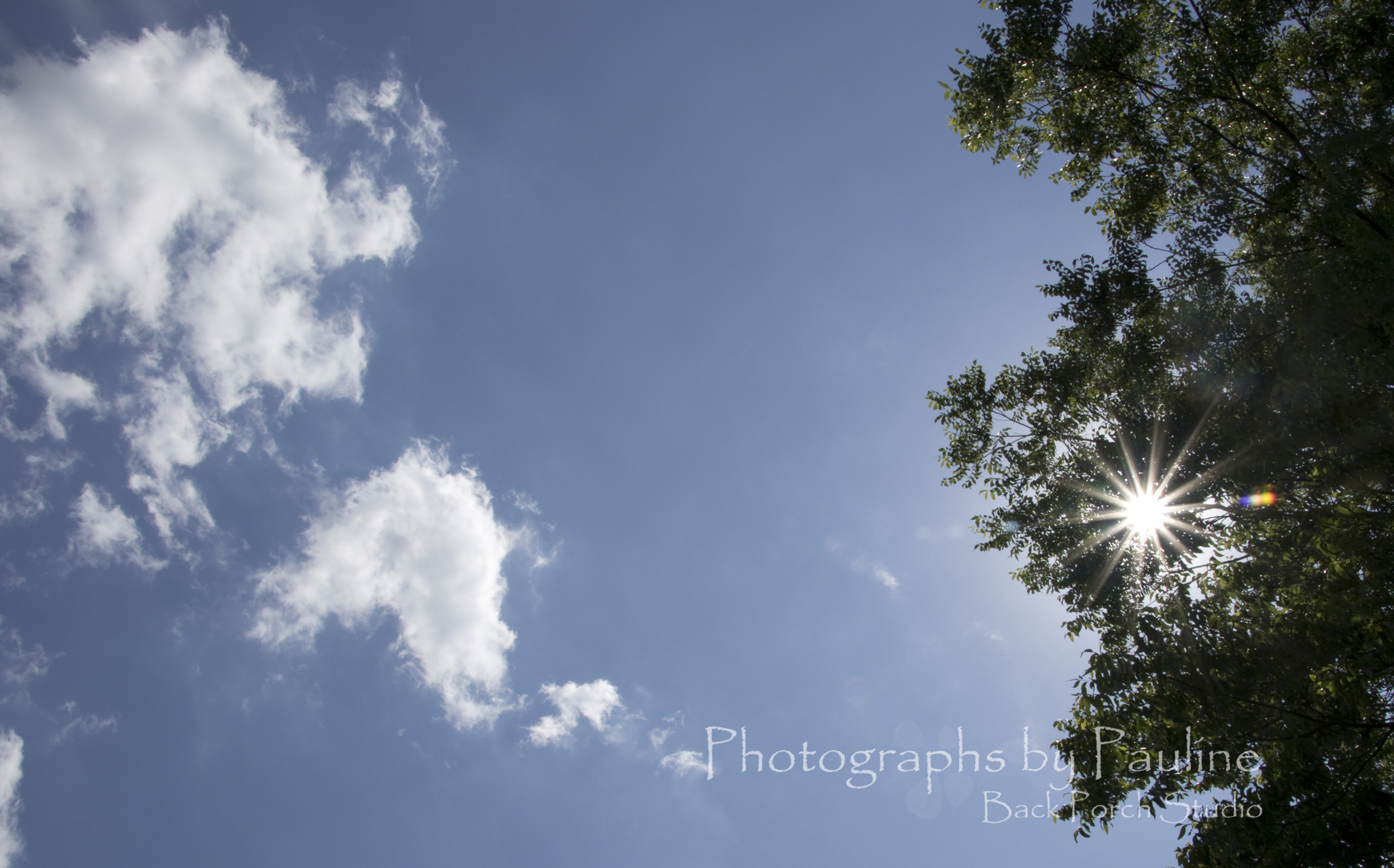 Sun burst, blue sky and white puffy clouds straight out of my camera (except resizing for the internet). 18 mm f/22 1/100 ISO 100