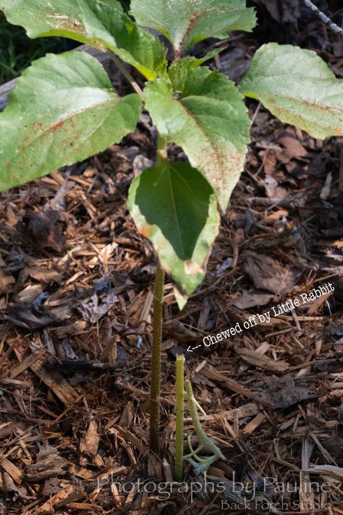 Second, young little rabbit ate all the delicate leaves off the second crop of sunflowers I planted later this spring.
