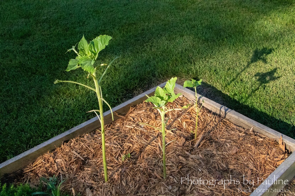 Much to my despair, a rabbit and ground hog found the new sunflowers a garden delight!