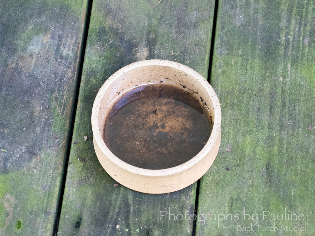 A praying mantis hanging from a sunflower bloom munching on a wasp. A very hungry caterpillar feasting on what is left of dill. Luckily, I harvested the dill last weekend. Happy to share left overs!And these critters keep showing up causing mayhem on the back porch.Those rascally raccoons found the sweet nectar of the gods in our 30 ounce humming bird feeder. They drank the WHOLE thing! The raccoons befouled Miss Kitty’s water bowl. Miss Kitty was highly offended and took refuge among the hostas not to be seen for the rest of the day.