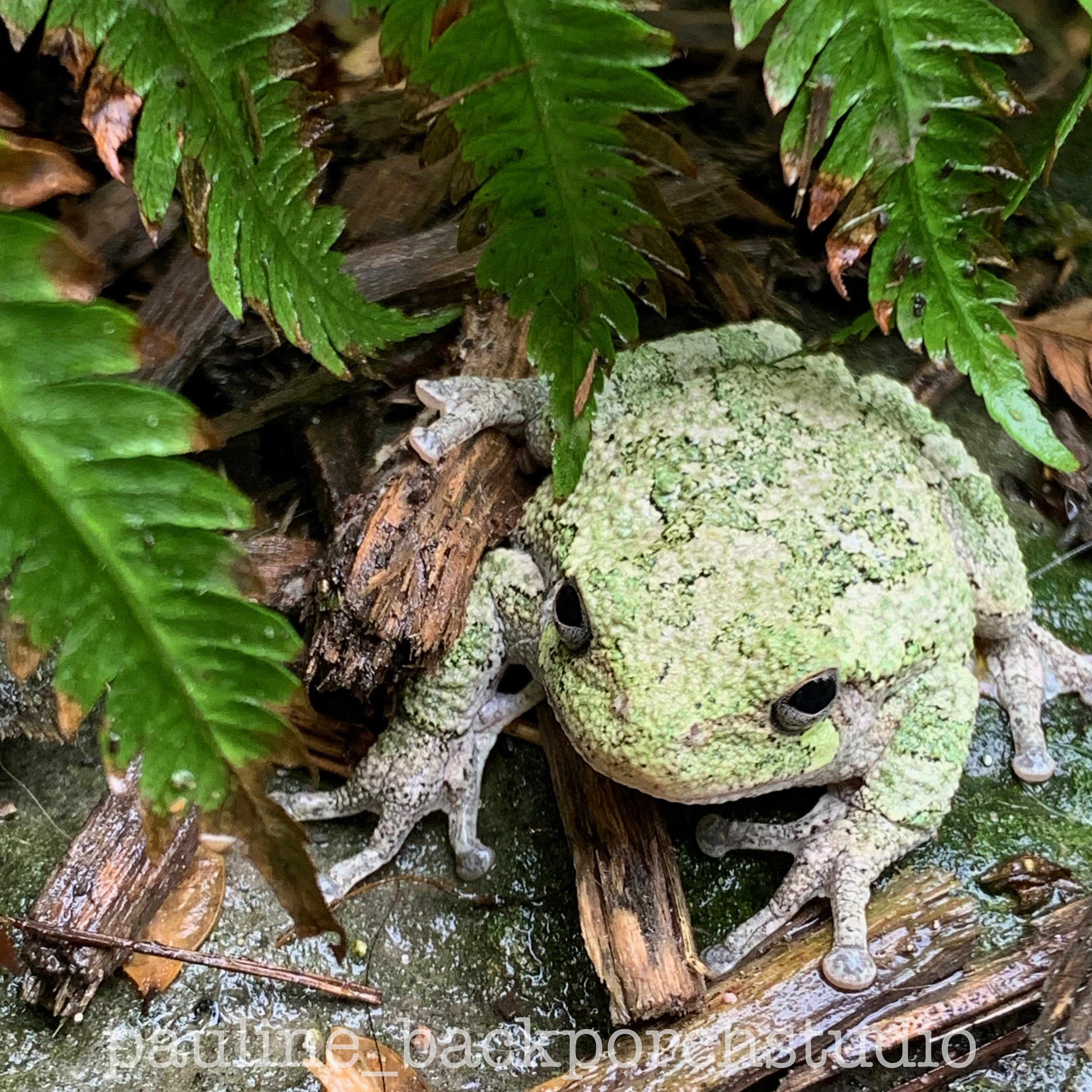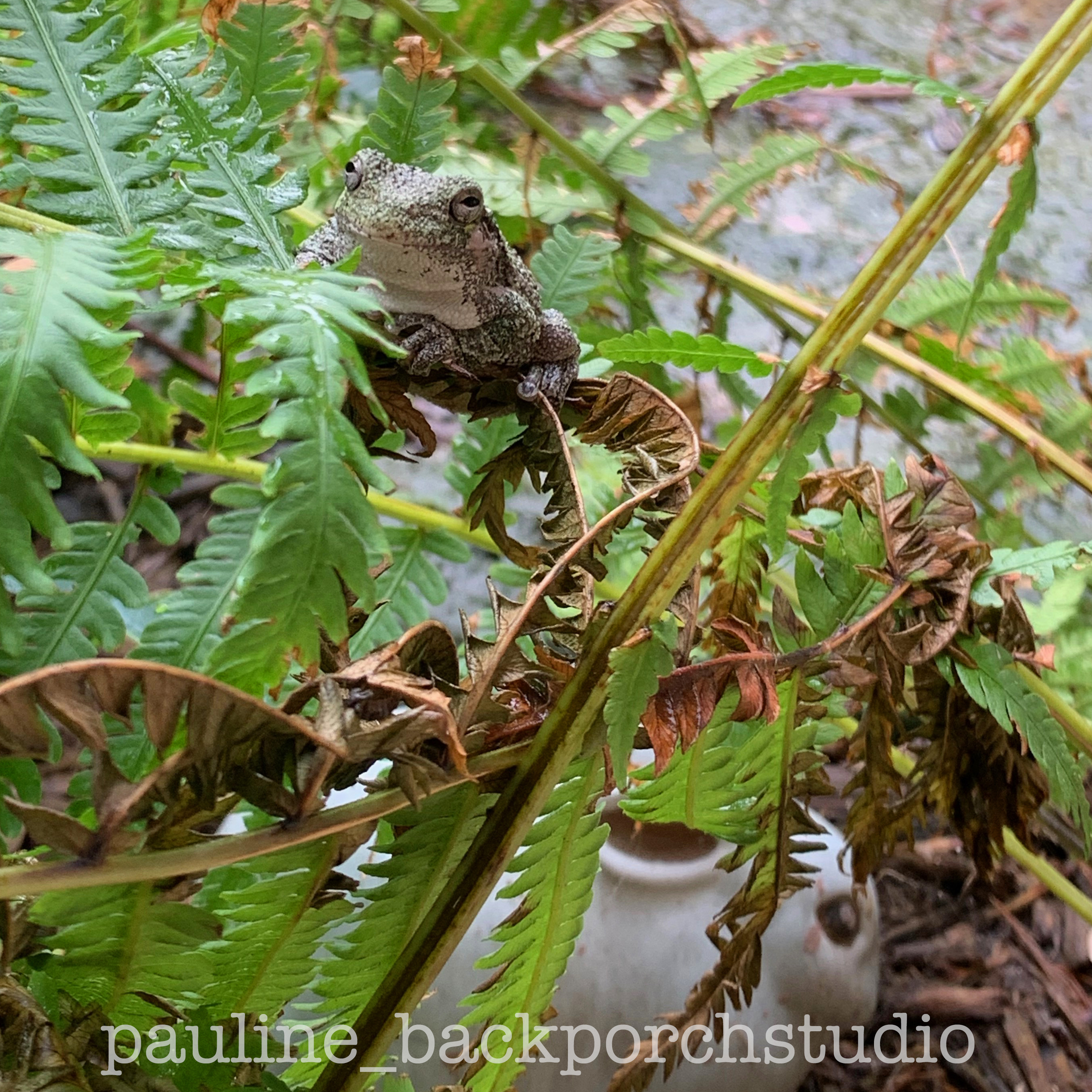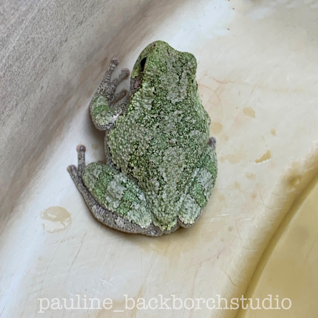 The frog wanna-be-potter was placed just off the back porch onto a nice cool shady rock.