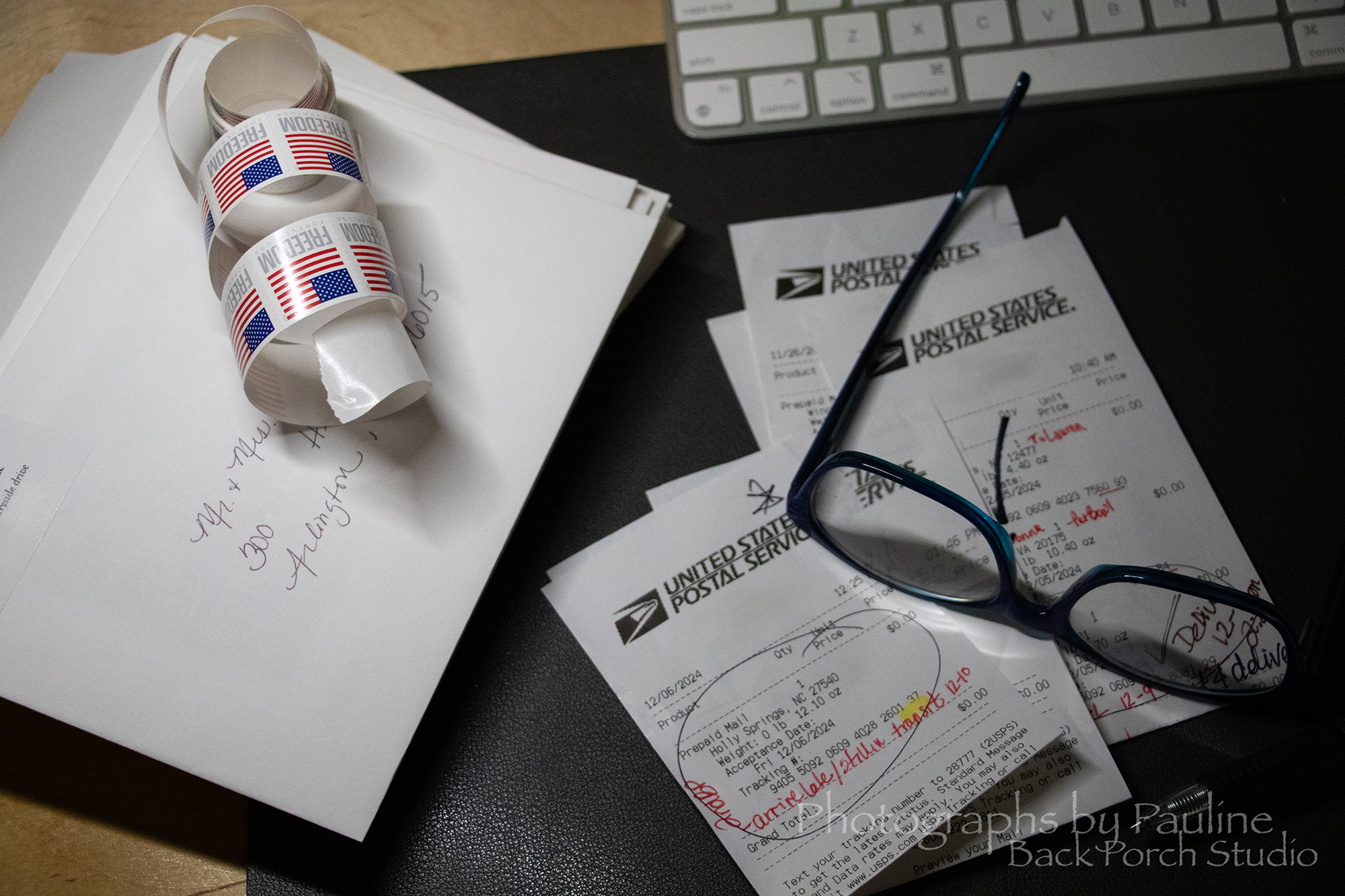 I hand over each parcel to our friendly neighborhood USPS with care and track each piece to it’s new home! (Really, they are so helpful and friendly! They are the best!)