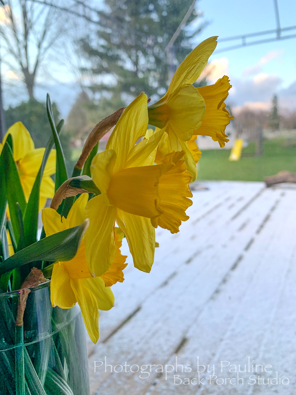 I managed to rescue a bundle Daffodils that were in full bloom in the garden and brought them inside to enjoy before they were bit by below freezing temperatures.